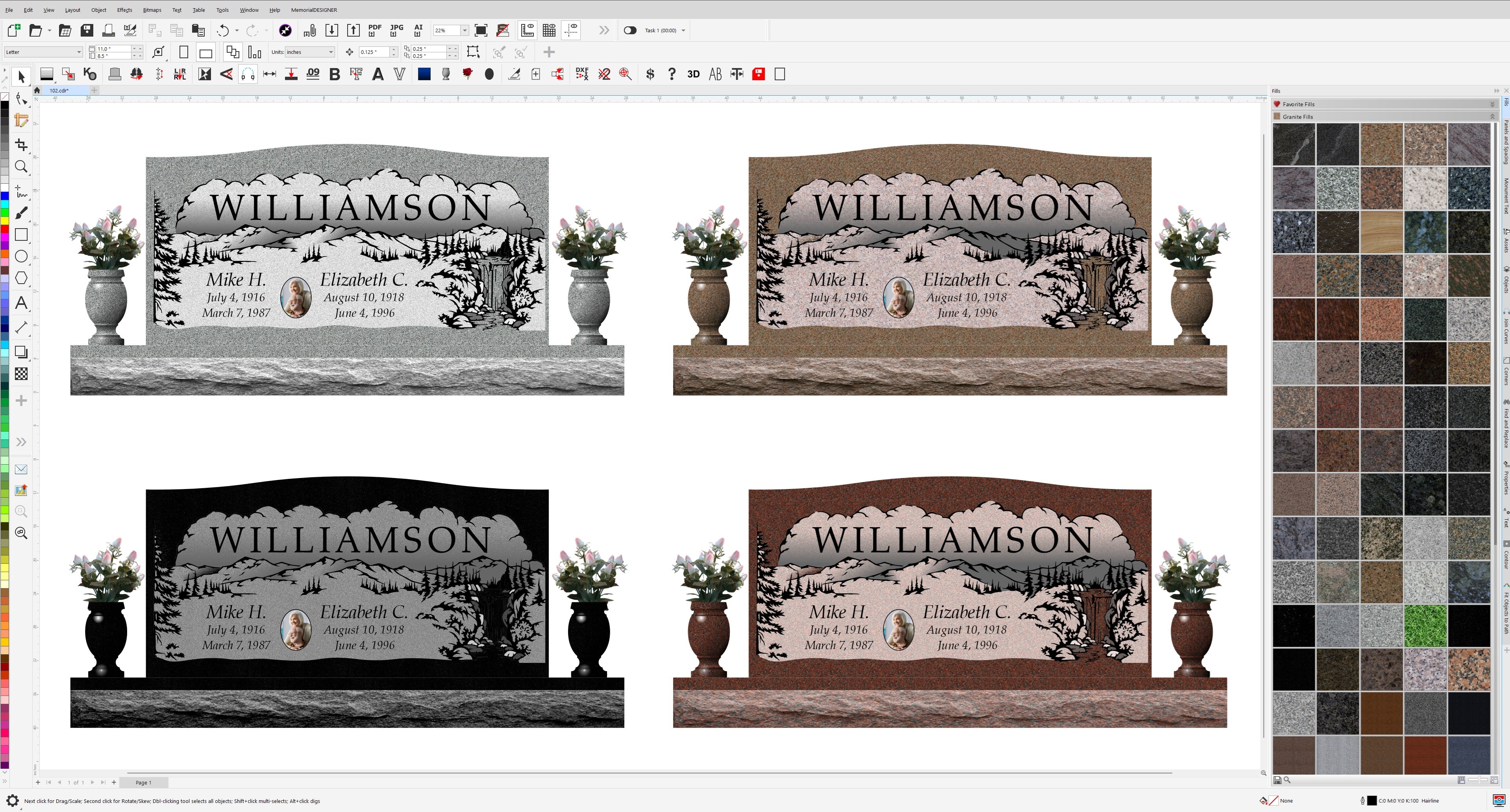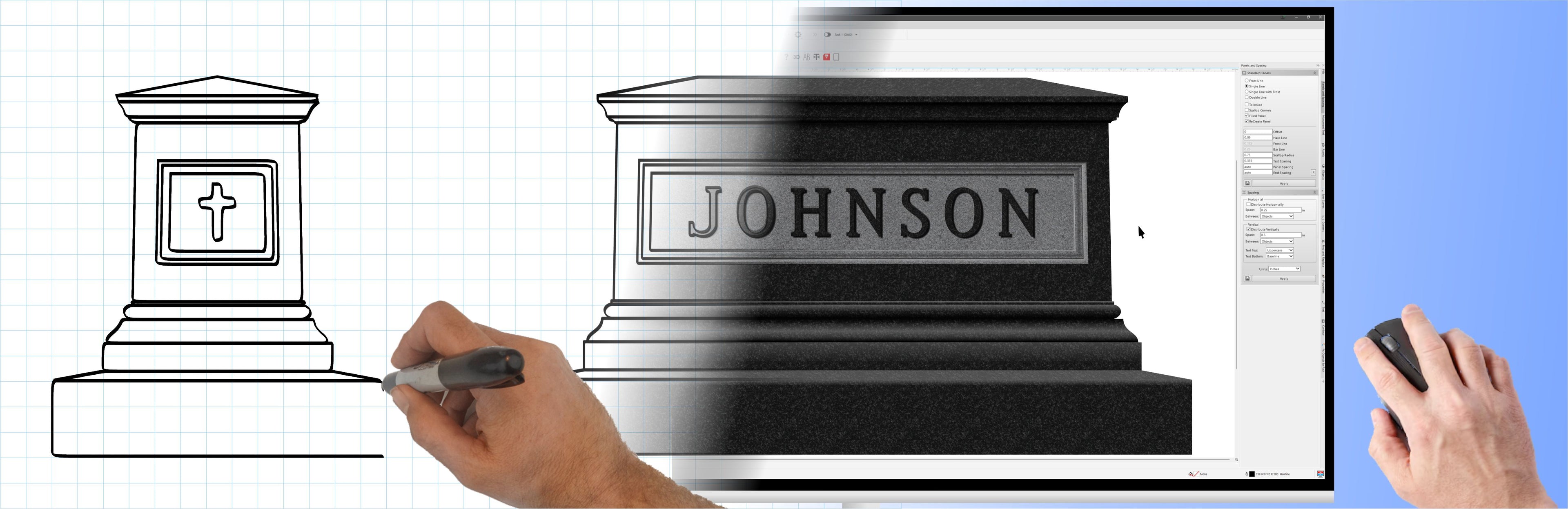 MemorialDESIGNER allows you to design markers, monuments, columbaria and mausolea. Because it is built on the CorelDRAW engine, it is vector based and all your designs are cuttable.